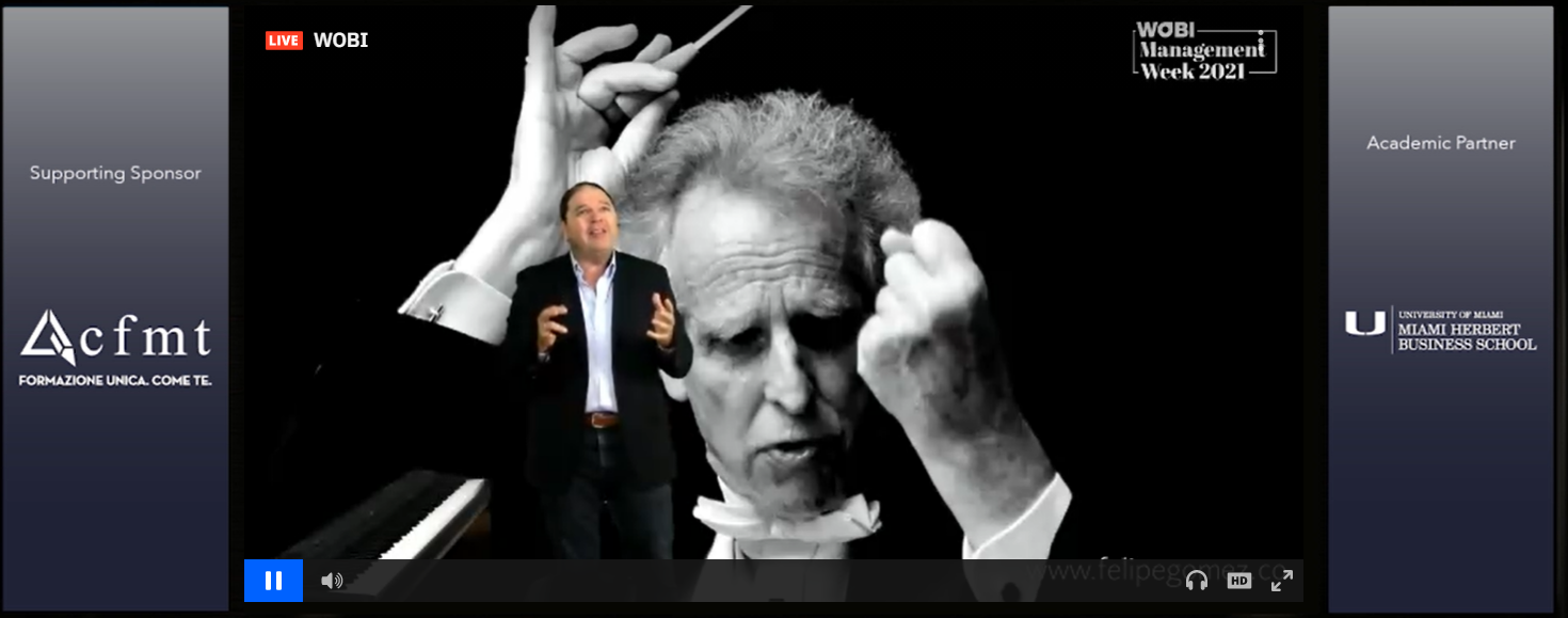 The first thing a conductor does upon coming out on stage is look out at the audience, to put the focus on others. In this way, a business leader should also work to serve others first and foremost, Felipe emphasized.