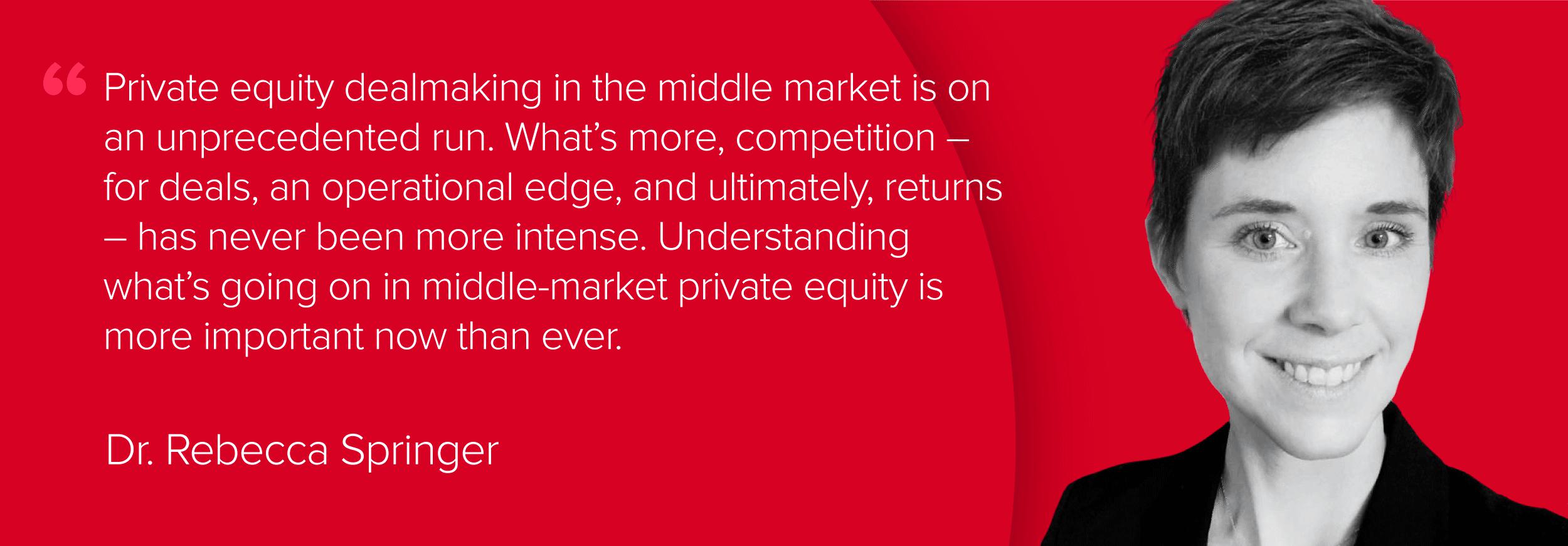 Dr. Rebecca Springer: Middle-Market Dealmaking is Back. Private equity analyst at PitchBook breaks down the future of the U.S. private equity middle market — and the defining forces PE executives and CEOs need to sharpen their competitive edge.